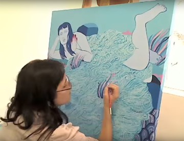 Monica draws and paint free hand but she is also a programmer and she transforms her paintings into animated digital works.